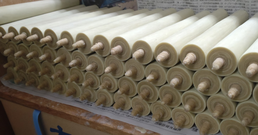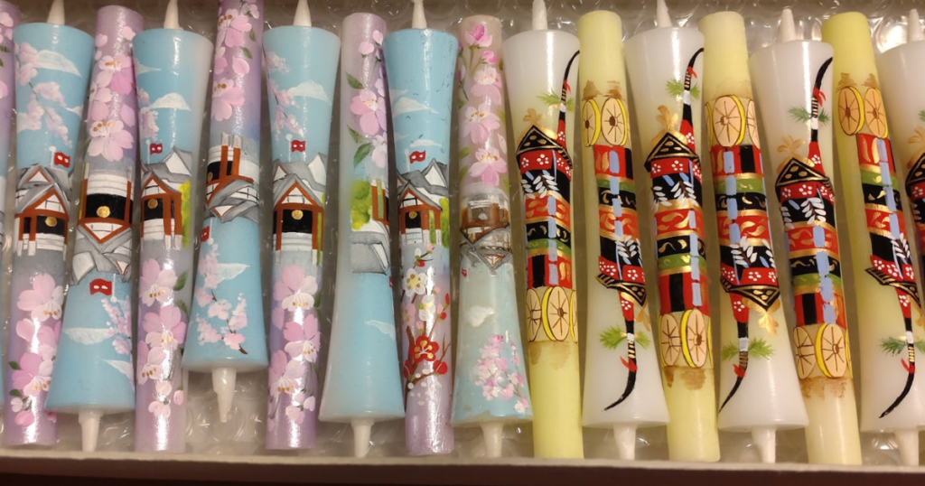 松本商店のろうそくは、植物性の蝋を一つひとつ手で仕上げています。